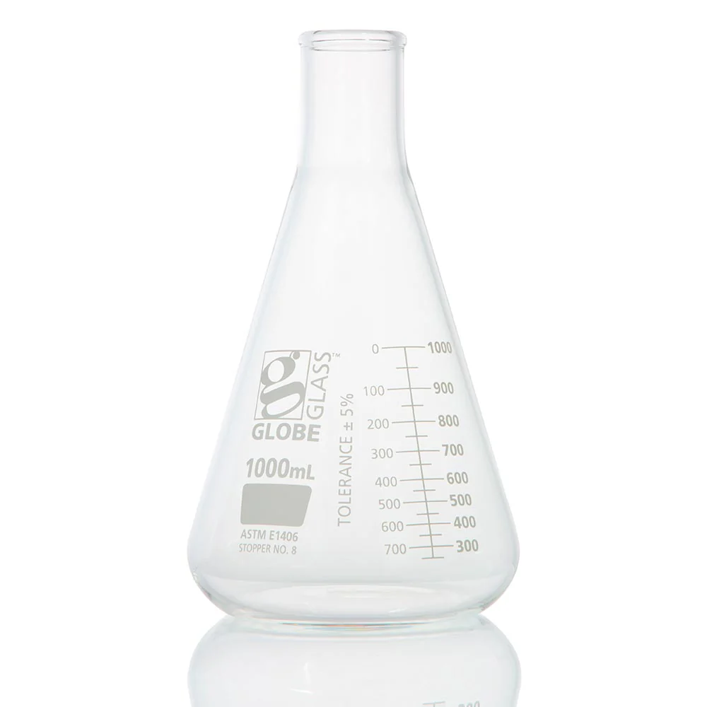 GLOBE SCIENTIFIC 8431000 Flask, Globe Glass, 1000 ml, Narrow Mouth, Dual Graduations