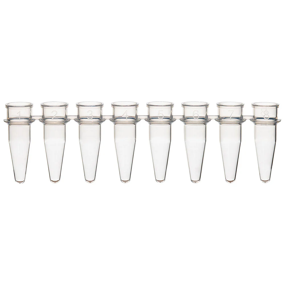GLOBE SCIENTIFIC PCR-02S Tube, 0.2 ml, 8-Strip, No Caps, Natural