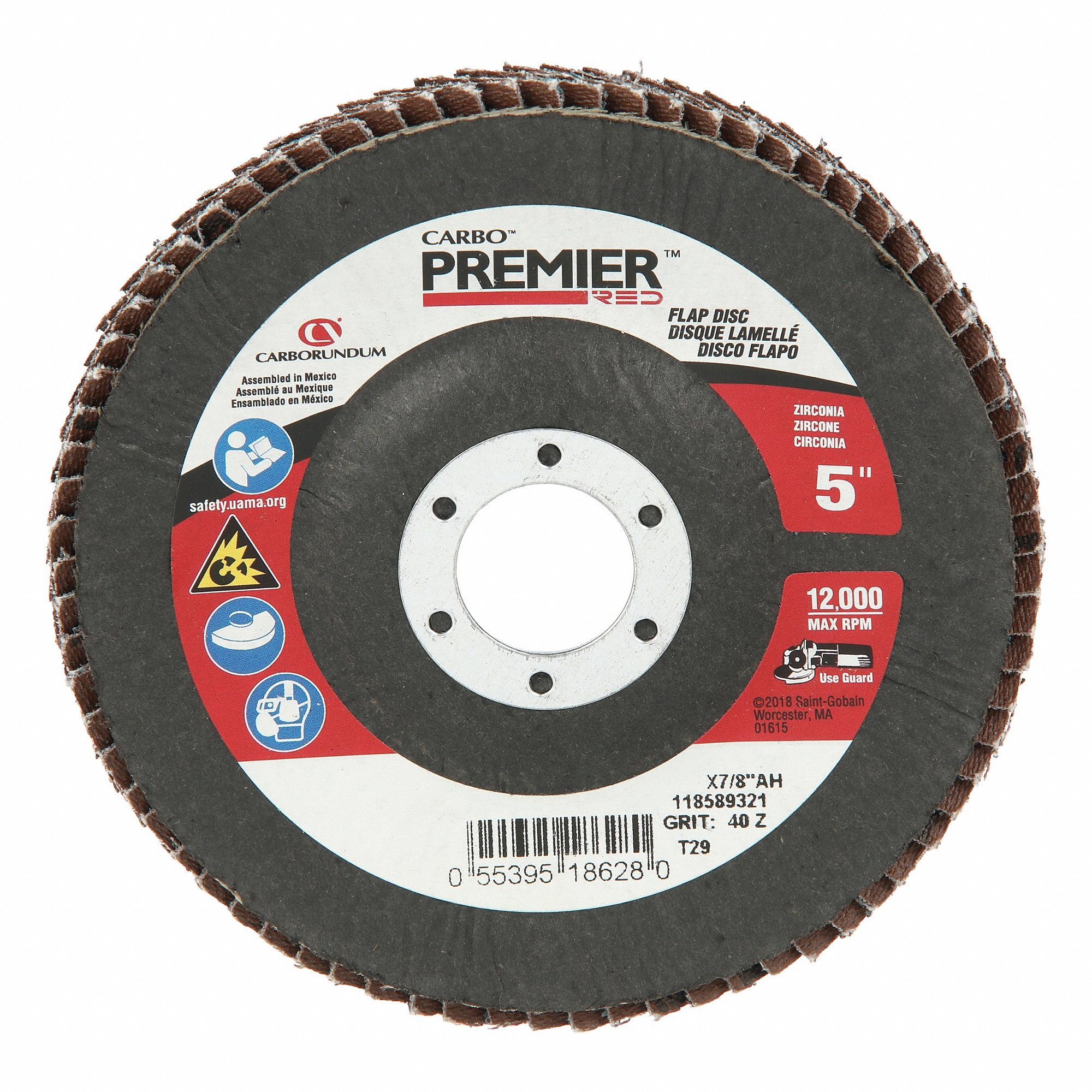 GRAINGER 5539518628 Flap Disc, Type 29, 5 Inch x 7/8 Inch, Zirconia Alumina, 40 Grit, Fiberglass Bk