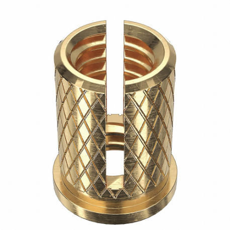 GRAINGER 260-5-BR-PK10 Press Insert, 5/16 In - 18 Thread Size, 9/16 In Insert Lg., Gr. C3604, Brass, Plain