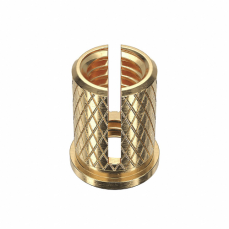 GRAINGER 260-5-BR-PK500 Press Insert, 5/16 In - 18 Thread Size, 9/16 In Insert Lg., Gr. C3604, Brass, Plain