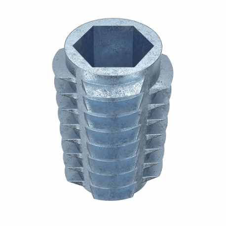 GRAINGER 851618-20-PK50 Hex Drive Threaded Insert, 51/64 In Insert Lg., Not Gr., Zn Alloy, Pln, 9/16 In Insert Dia., 0.438 In Max. Hole Dia., Flush Flange