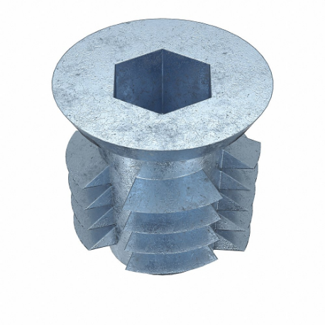 GRAINGER 901032-10-PK50 Hex Drive Threaded Insert, 7/16 In Insert Lg., Not Gr., Zn Alloy, Pln, 7/16 In Insert Dia., 0.281 In Max. Hole Dia.