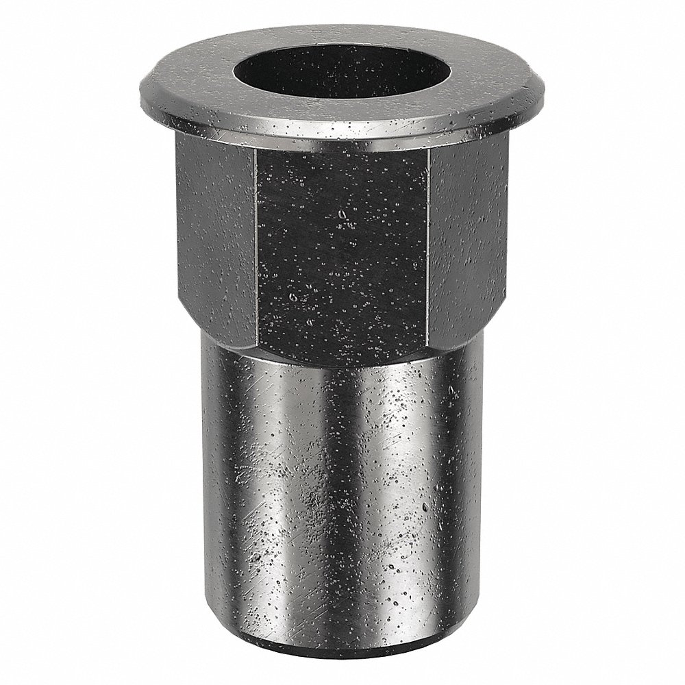 GRAINGER CAH2-1024-225-50 Rivet Nut, 10-24 Thread Size, Steel, 0.535 In Lg., 0.13 In To 0.225 In Grip Rng, Open