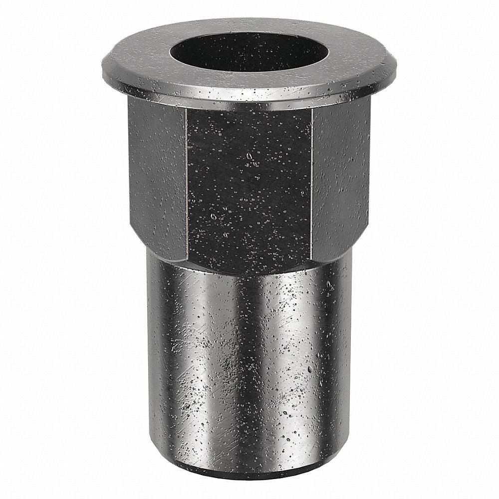 GRAINGER CAH2-1032-225-50 Rivet Nut, 10-32 Thread Size, Steel, 0.535 In Lg., 0.13 In To 0.225 In Grip Rng, Open