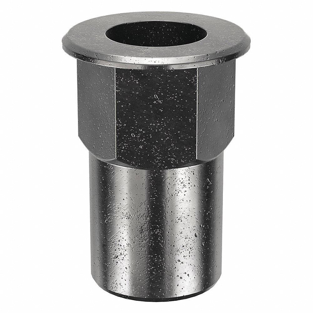 GRAINGER CAH2-2520-260-40 Rivet Nut, 1/4 In - 20 Thread Size, Steel, 0.685 In Lg., 0.165 In To 0.26 In Grip Rng, Open