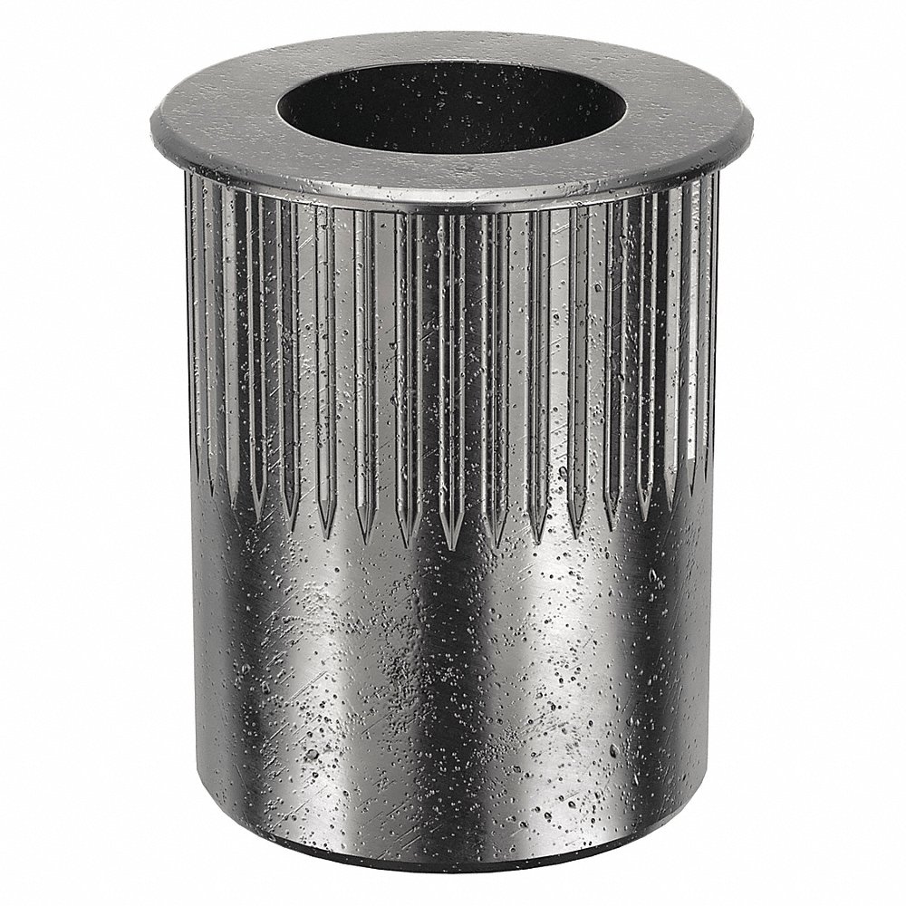 GRAINGER CAK2-3118-150-25 Rivet Nut, 5/16 In - 18 Thread Size, Steel, 0.69 In Lg., 0.027 to 0.15 In Grip Rng, Open, 0.022 In Head Ht.