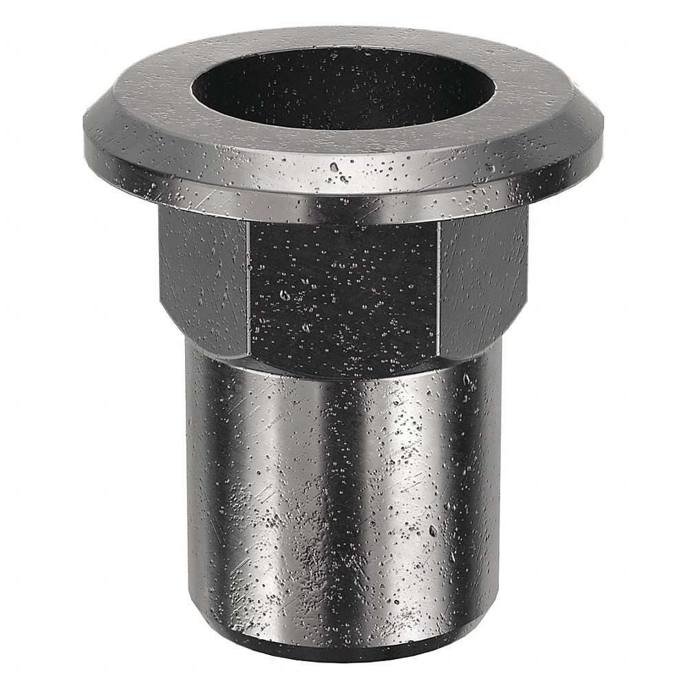 GRAINGER CFH2-1024-085T-25 Rivet Nut, 10-24 Thread Size, Steel, 11/32 In Lg., 0.01 In To 0.085 In Grip Rng, Open