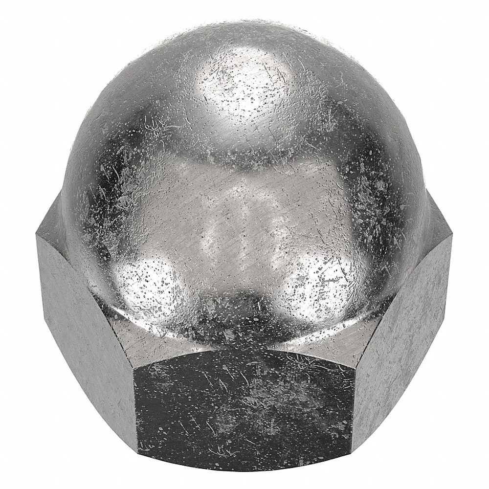GRAINGER CPB024 Cap Nut, 1/4 In - 28 Thread Size, 0.469 In Overall Ht., 7/16 In Hex Wd., Gr. 18-8, Fine