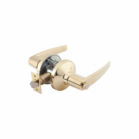 GRAINGER GP 176 MIA 605 234 ASA Door Lever Lockset, Grade 2, Mia Straight, Bright Brass, Not Keyed