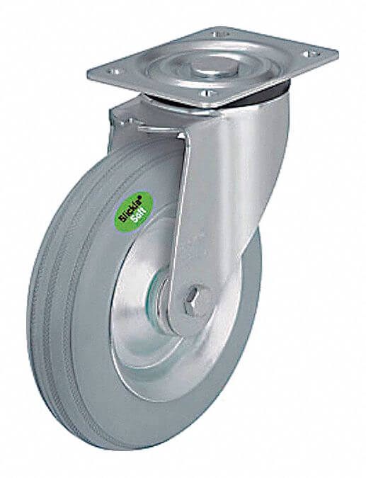 GRAINGER L-VW 162R-SG Plate Caster With Flat Free Wheels, Swivel, 6 5/16 Inch Wheel Dia.