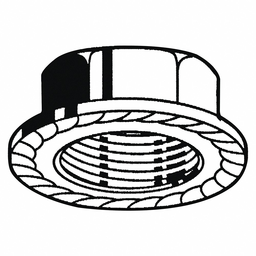 GRAINGER M11610.040.0001 Locknut, M4x0.7 Thread Size, Serrated, 7 mm Hex Wd., Flange, Zn Plated, Class 8