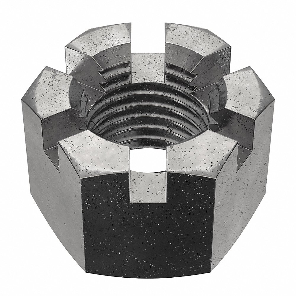 GRAINGER M12000.300.0001 Castle Nut, M30x3.5 Thread Size, Hex Slotted Nut Regular, 46mm Hex Wd., Pln, Steel