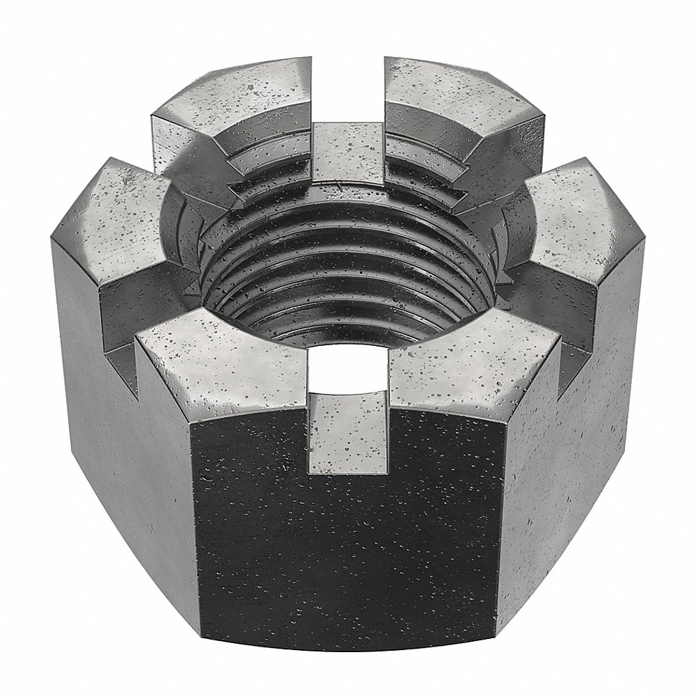 GRAINGER M12000.330.0001 Castle Nut, M33x3.5 Thread Size, Hex Slotted Nut Regular, 50mm Hex Wd., Pln, Steel