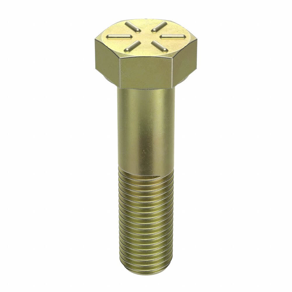 GRAINGER N04104.112.0450 Hex Head Cap Screw, 1 1/8 In - 7 Thread Size, Steel, 4 1/2 In Lg., 11/16 In Head Ht., Coarse, Yellow Zn Plated
