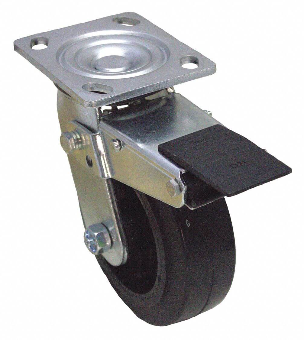 GRAINGER P21S-RY050R-14-TB Sanitary Plate Caster, Swivel, Rubber, 400 Lbs. Load Rating, 5 Inch Wheel Dia.