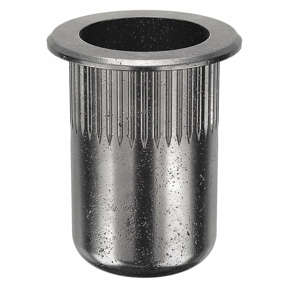 GRAINGER RFL2-2520-150-10 Rivet Nut, 1/4 In - 20 Thread Size, Steel, 0.819 In Lg., 0.027 In To 0.15 In Grip Rng, Open