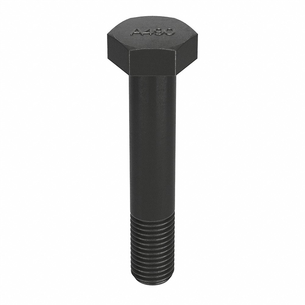 GRAINGER U04008.112.0650 Hex Structural Bolt, 1 1/8 In - 7 Thread Size, Steel, 6 1/2 In Lg., Blk Oxide, Gr. A490