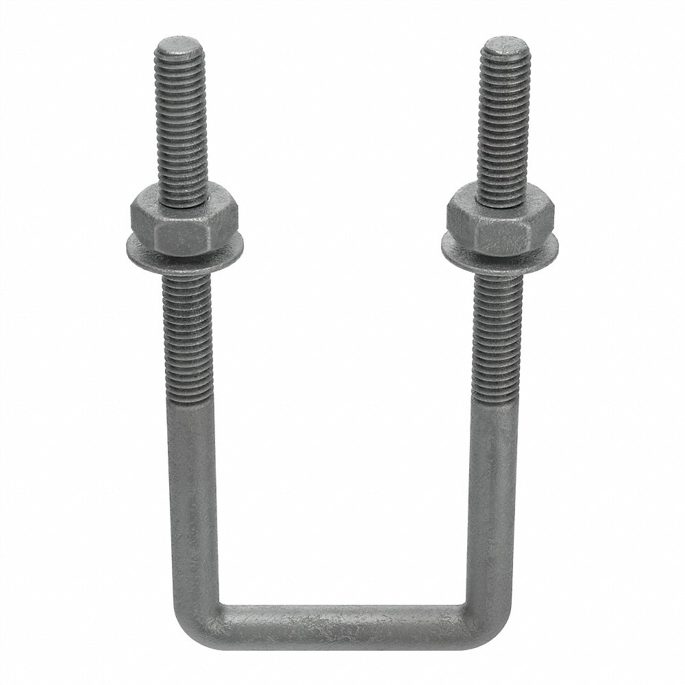 GRAINGER U17264.037.0205 U Bolt, 3/8 In - 16 Thread Size, Square, 5 In Inside Lg., 2 In Inside Wd., Steel