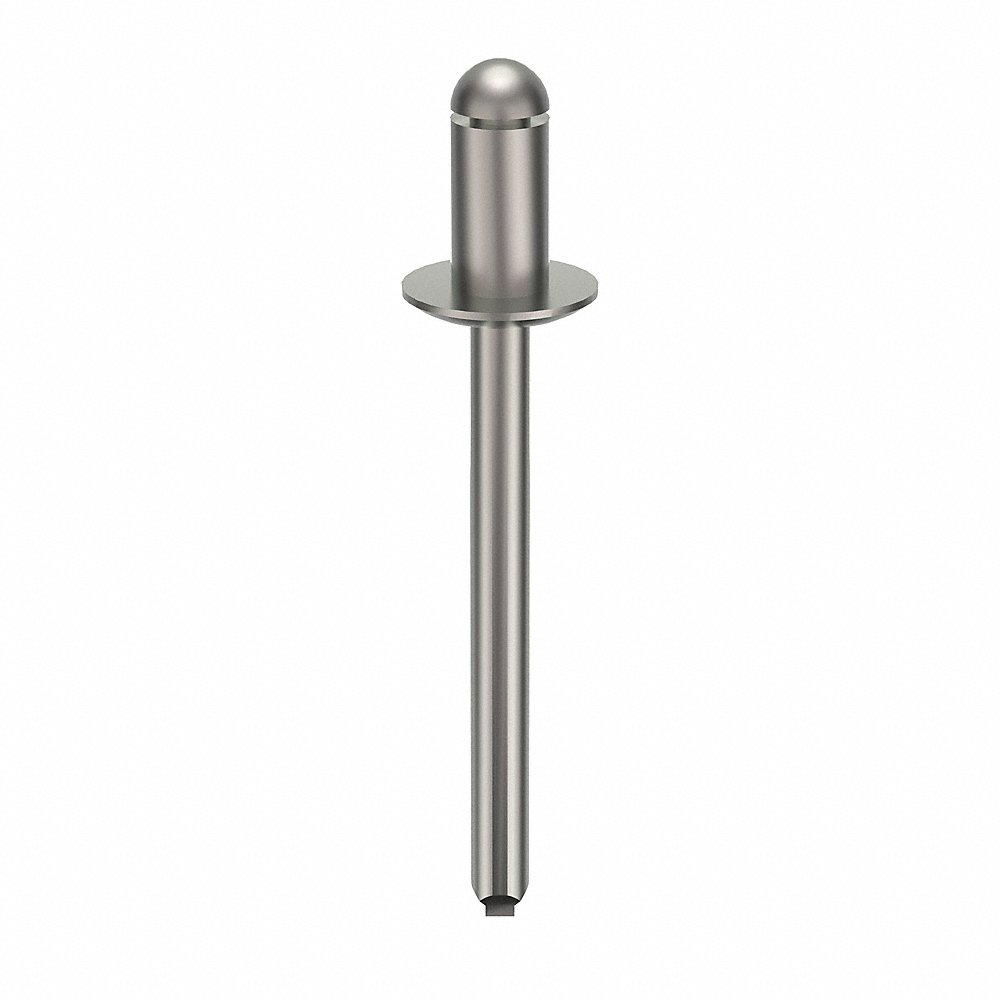 GRAINGER U34142.018.0062 Blind Rivet, 3/16 In Rivet Dia., SS, 0.325 In Rivet Lg., 0.06 In Head Ht., Dome