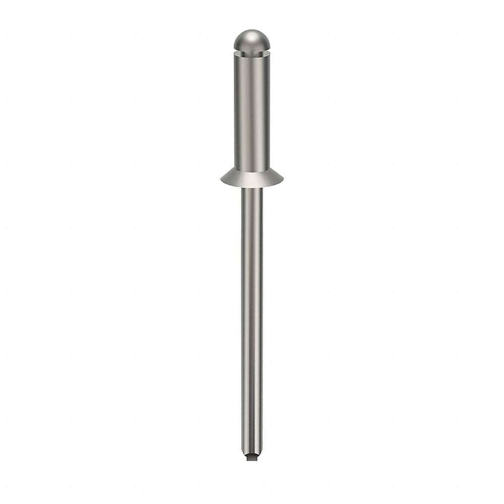 GRAINGER U34184.012.0044 Blind Rivet, 1/8 In Rivet Dia., SS, 2/5 In Rivet Lg., 1/25 In Head Ht.