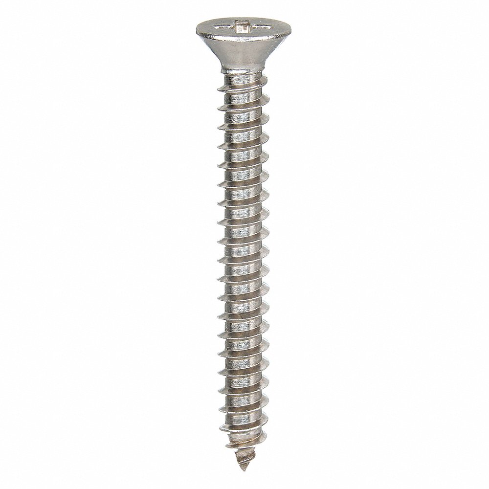 GRAINGER U51680.011.0100 Tapping Sheet Metal Screw, 1 In Lg., 0.067 In Head Ht., 0.212 In Head Dia., 4 Screw Size, Phillips, Flat, Pln