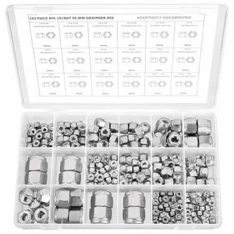 GRAINGER WWG16BMUSMGR Hex Locknut Assortment, SS