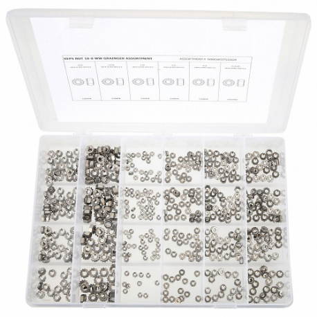 GRAINGER WWG6KEPSSSGR Hex Locknut Assortment, SS
