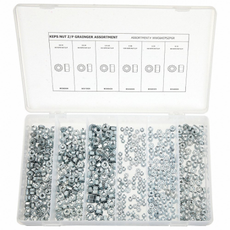 GRAINGER WWG6KEPSZPGR Hex Locknut Assortment, Steel