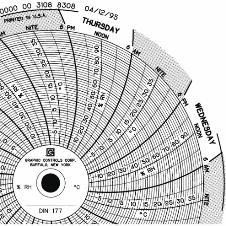 GRAPHIC CONTROLS Chart 177 Circular Paper Chart, 4 Inch Chart Dia, -10 Deg to 40 Deg C