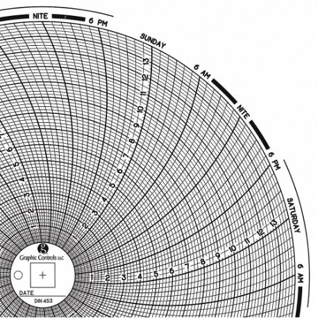 GRAPHIC CONTROLS Chart 453 Circular Paper Chart, 8 Inch Chart Dia, 0 to 14