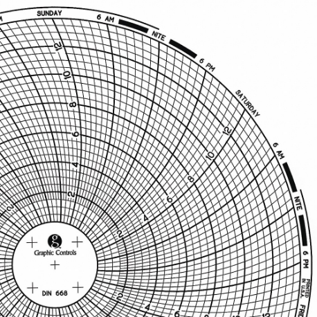 GRAPHIC CONTROLS Chart 668 Circular Paper Chart, 6 Inch Chart Dia, 0 to 14 PSI