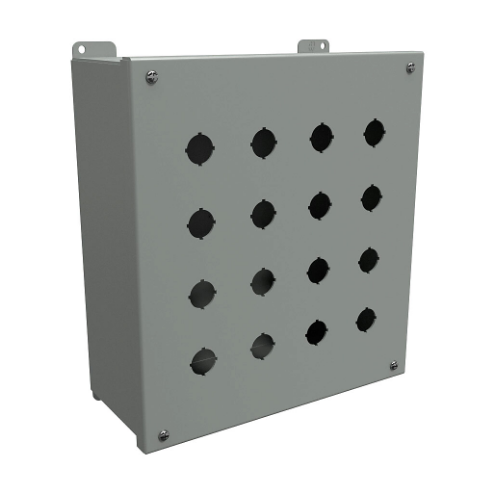 HAMMOND 1437MS Pushbutton Enclosure, 16 Holes, 22mm, 12 x 11 x 5 Inch Size, Wall Mount, Carbon Steel