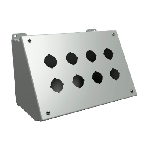 HAMMOND 1490G8 Pushbutton Consolet, 8 Holes, 30mm, 7 x 11 x 7 Inch Size, Desktop Or Pedestal Mount
