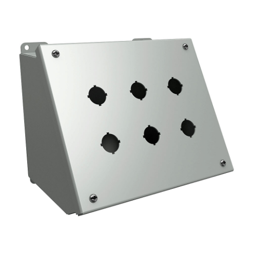 HAMMOND 1490MG6 Pushbutton Consolet, 6 Holes, 22mm, 7 x 9 x 7 Inch Size, Desktop Or Pedestal Mount