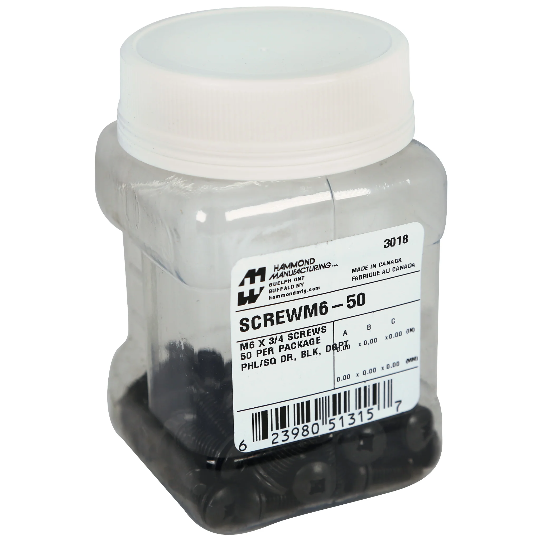 HAMMOND SCREWM6-50 Rack Mounting Screw, M6, Carbon Steel, Black Oxide Finish