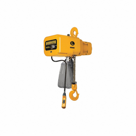 HARRINGTON NER000600L-10/460v Electric Chain Hoist, 600 Lb Load Capacity, 1 Speeds, 460 Volt, 15 Fpm, 0.75 Hp, H4