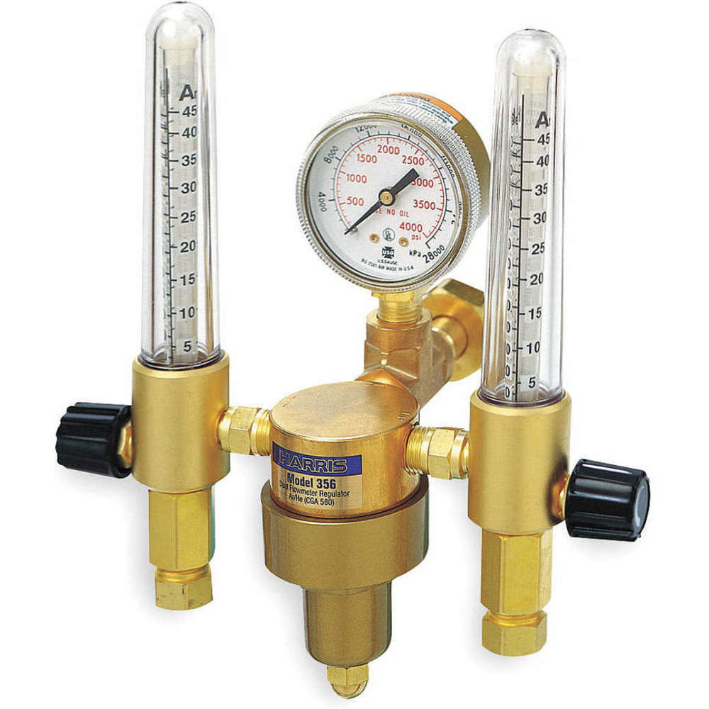 HARRIS 356-AR/HE-580 Flowmeter Regulator, CGA 580 Inlet, 5/8 in -18 F RH Outlet