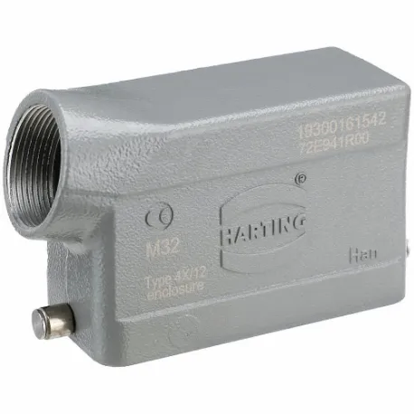 HARTING 19300161542 M32 Rectangular Connector Hood, Size 16 B, Side, Single-Entry, M32 Cable Entry, Aluminum