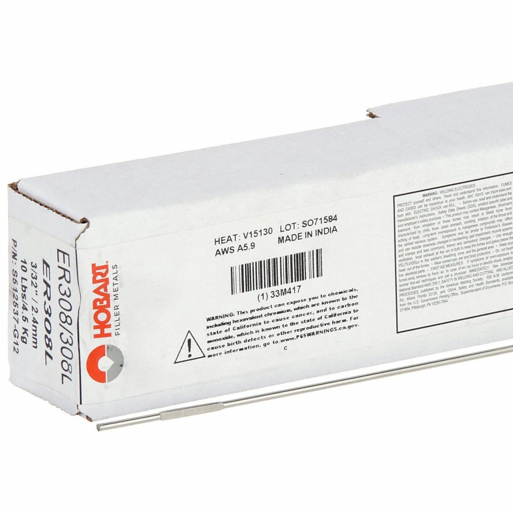 HOBART S512537-G12 Tig Welding Rod, Stainless Steel, 36 Inch Overall Length, 0.093 Inch Overall Dia.