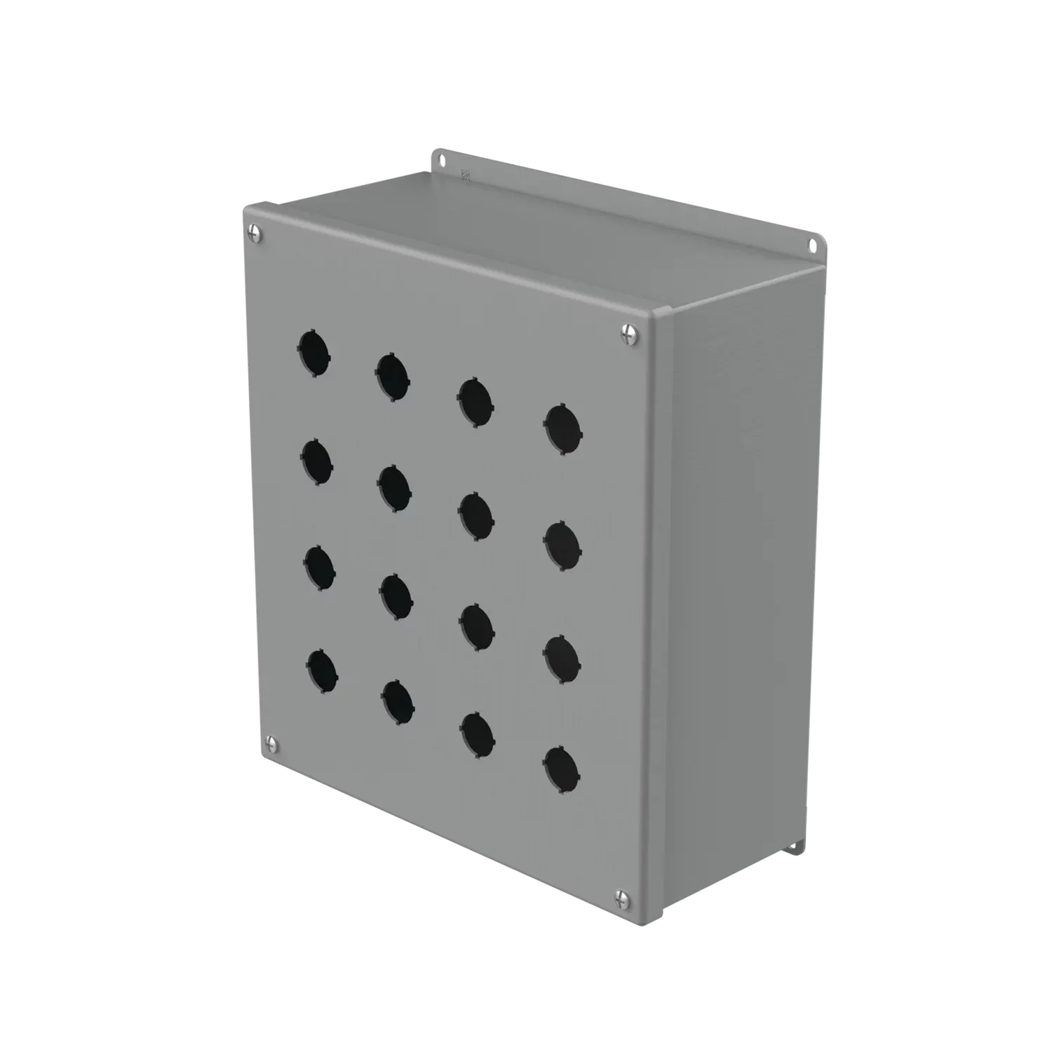HOFFMAN E16PBXM 13047 Pushbutton Enclosure, 22.5mm Size, Square, Gray, Steel