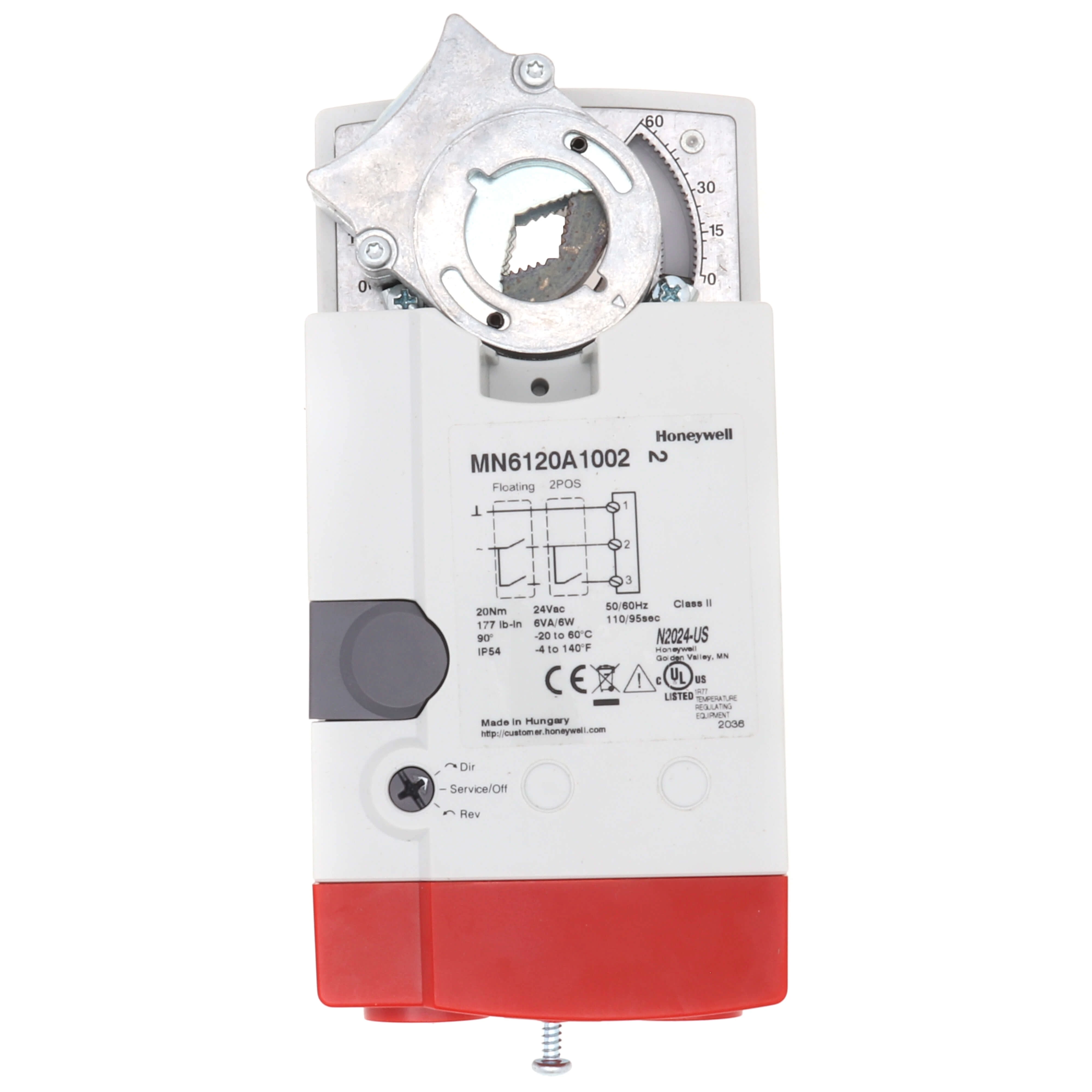 HONEYWELL MN6120A1002 Electric Actuator, Spdt Switch Type, 24VAC, -5 To 140 Deg. F, 175 In-Lbs. Torque