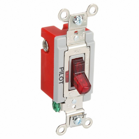 HUBBELL - BRYANT 4901PLR120 Pilot Light Wall Switch, Toggle Switch, Single Pole, Red, 20 A Terminals Terminals