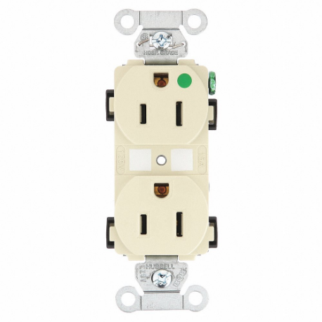 HUBBELL - BRYANT 8200HBI Receptacle, Duplex, 5-15R, 15 A, 125V AC, Ivory, 2 Poles, Screw Terminals