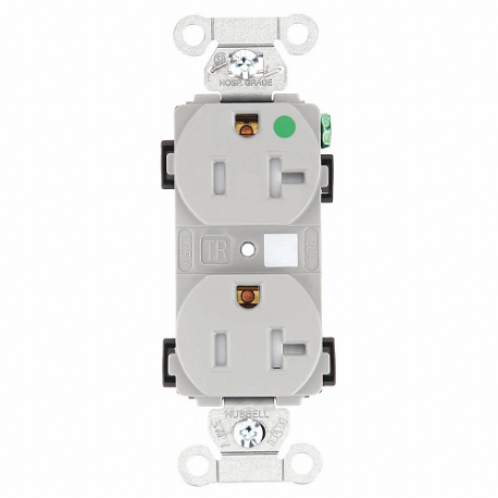 HUBBELL - BRYANT 8300HBGRTR Receptacle, Duplex, 5-20R, 20 A, 125V AC, Gray, 2 Poles, Screw Terminals, Hospital Grade