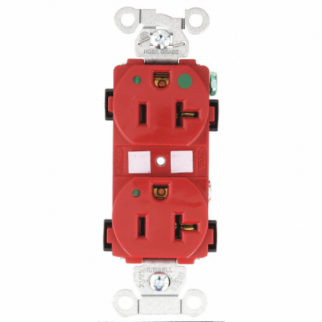 HUBBELL - BRYANT 8300HBREDL Receptacle, Duplex, 5-20R, 20 A, 125V AC, Red, 2 Poles, Screw Terminals