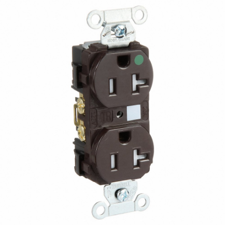 HUBBELL - BRYANT 8300HBTR Receptacle, Duplex, 5-20R, 20 A, 125V AC, Brown, 2 Poles, Screw Terminals