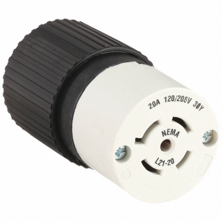 HUBBELL - BRYANT BRY72120NC Locking Connector, L21-20R, 20 A, 120/208V AC, 4 Poles, Black/White, Screw Terminals
