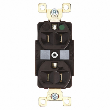 HUBBELL - BRYANT BRY8200 Receptacle, Duplex, 5-15R, 15 A, 125V AC, Brown, 2 Poles, Screw Terminals