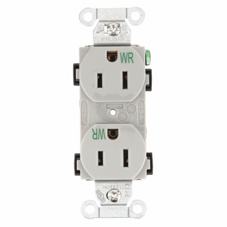 HUBBELL - BRYANT CBRS15GRYWR Receptacle, Duplex, 5-15R, 15 A, 125V AC, Gray, 2 Poles, Screw Terminals
